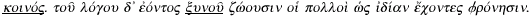 lógos sendo o comum, muitos (homens) vivem como tendo pensamento particular”.